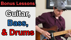Enjoy access to over 20 additional free lessons for guitar, bass, and drums!